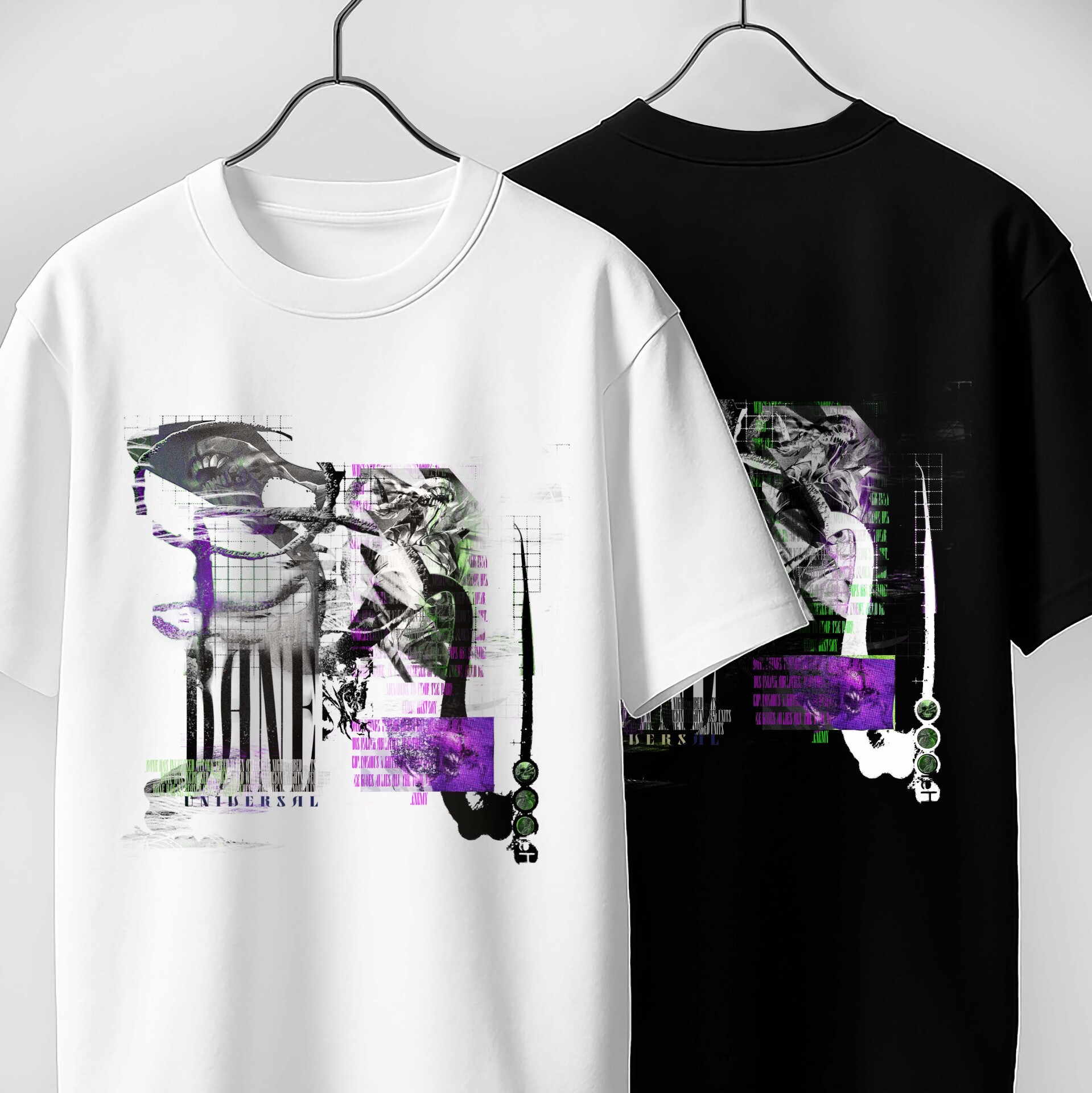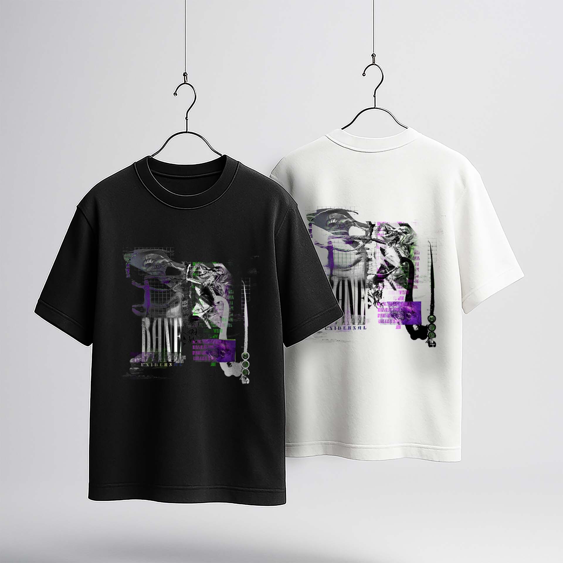 فریمهای درهم، خطوط نویزی و تایپوگرافی کشیدهای که روی طرح نشسته، فضا رو تبدیل میکنه به یک پوستر روانپریشانه یه چیزی بین پوستر فیلم ترسناک و یک مانیتور هکشده.