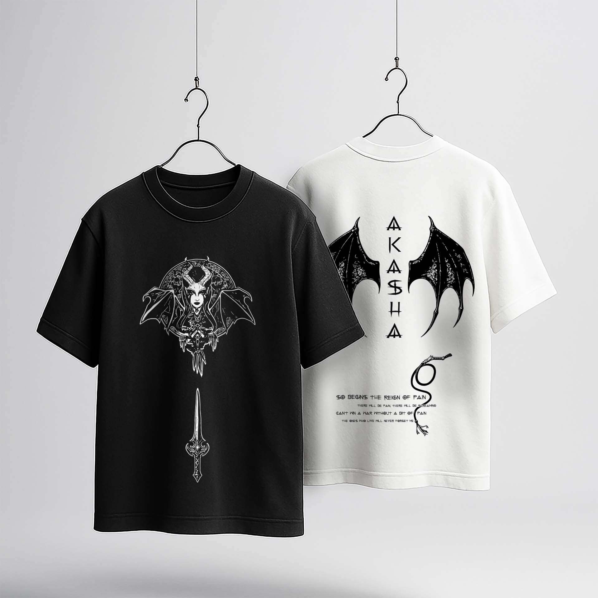 یک استایل خطی، در عین حال هنری که پرترهی جذاب و شیاطینۀ Akasha رو با بالها، شاخها و جزئیات سلاحش ترکیب کرده...