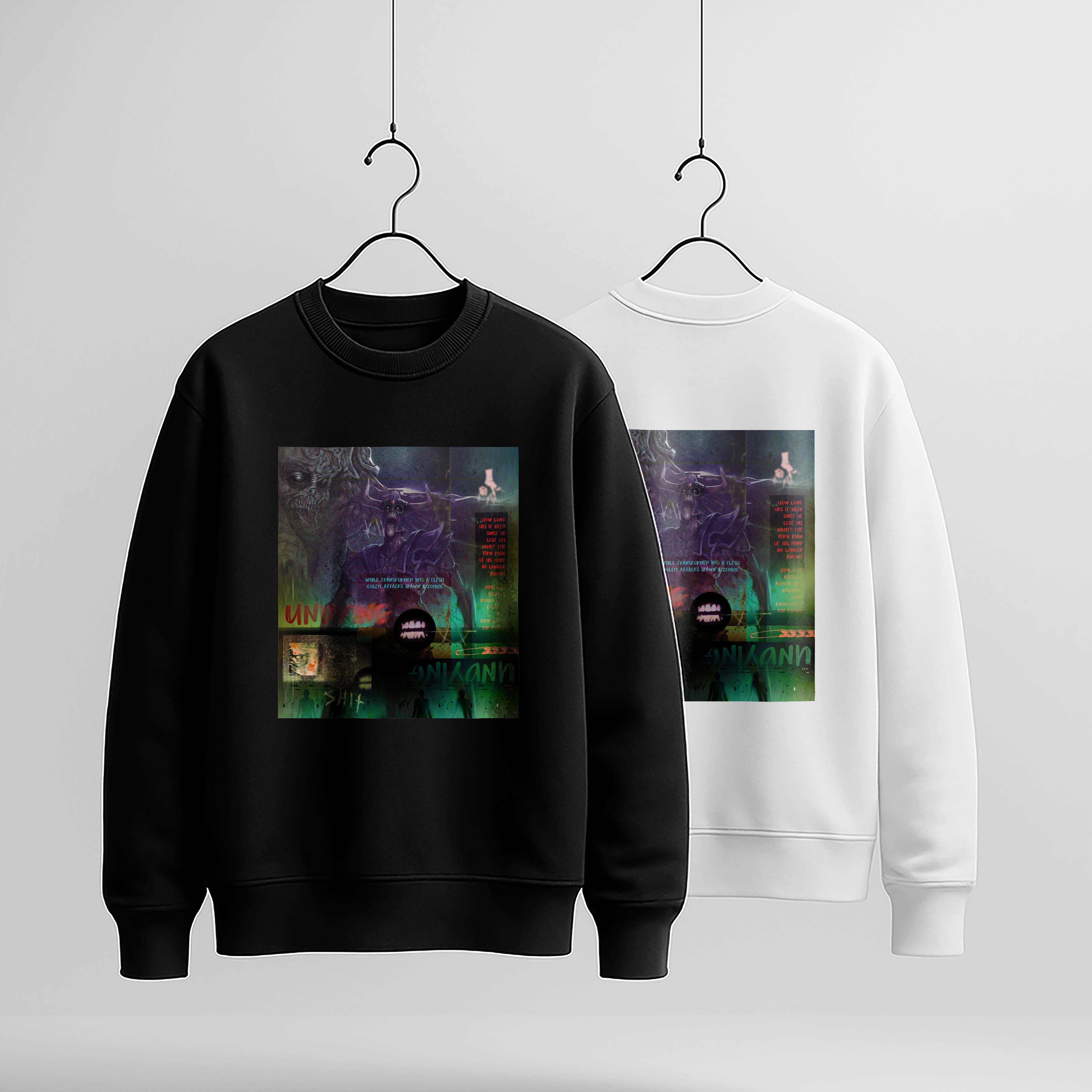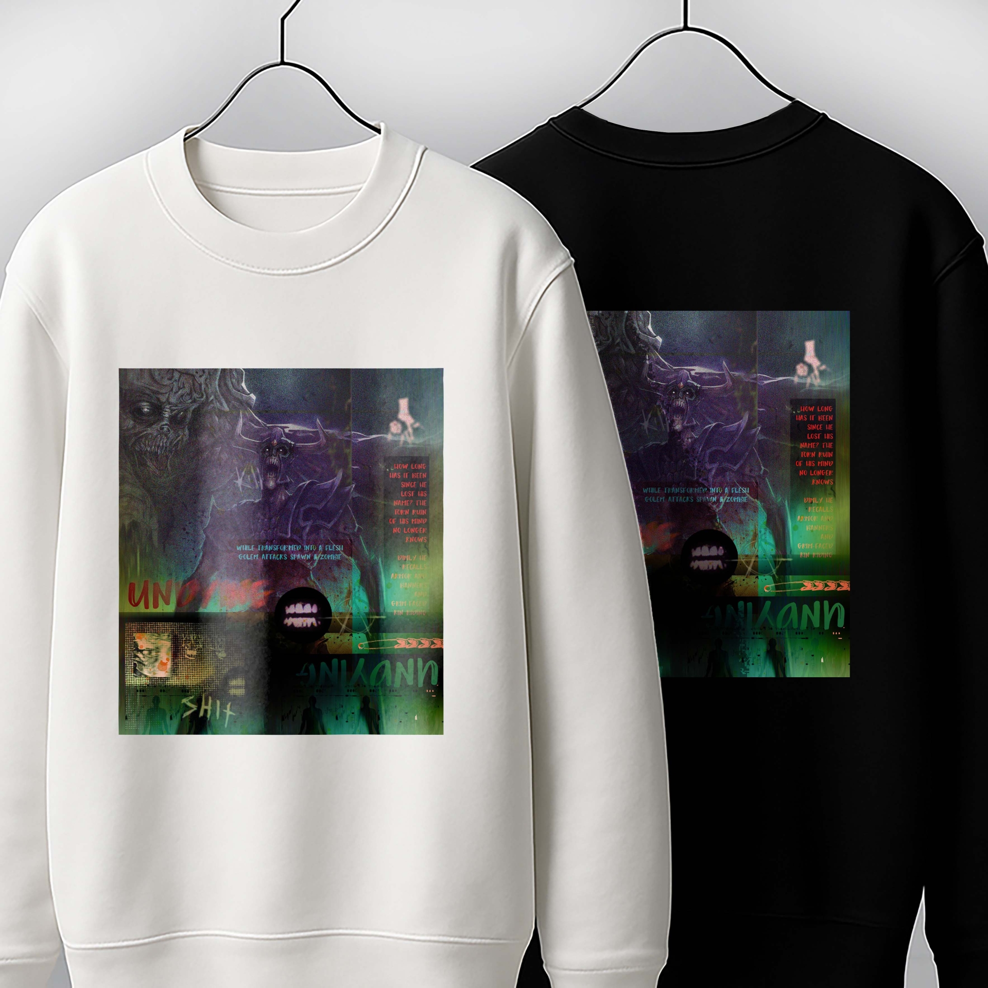 طرح پوستر مانندی با رنگهای سبز و بنفش تیره، نویزهای درهم و متنهایی که نصفه خونده میشن، فضای یه دنیای پوسیده رو زنده میکنه..