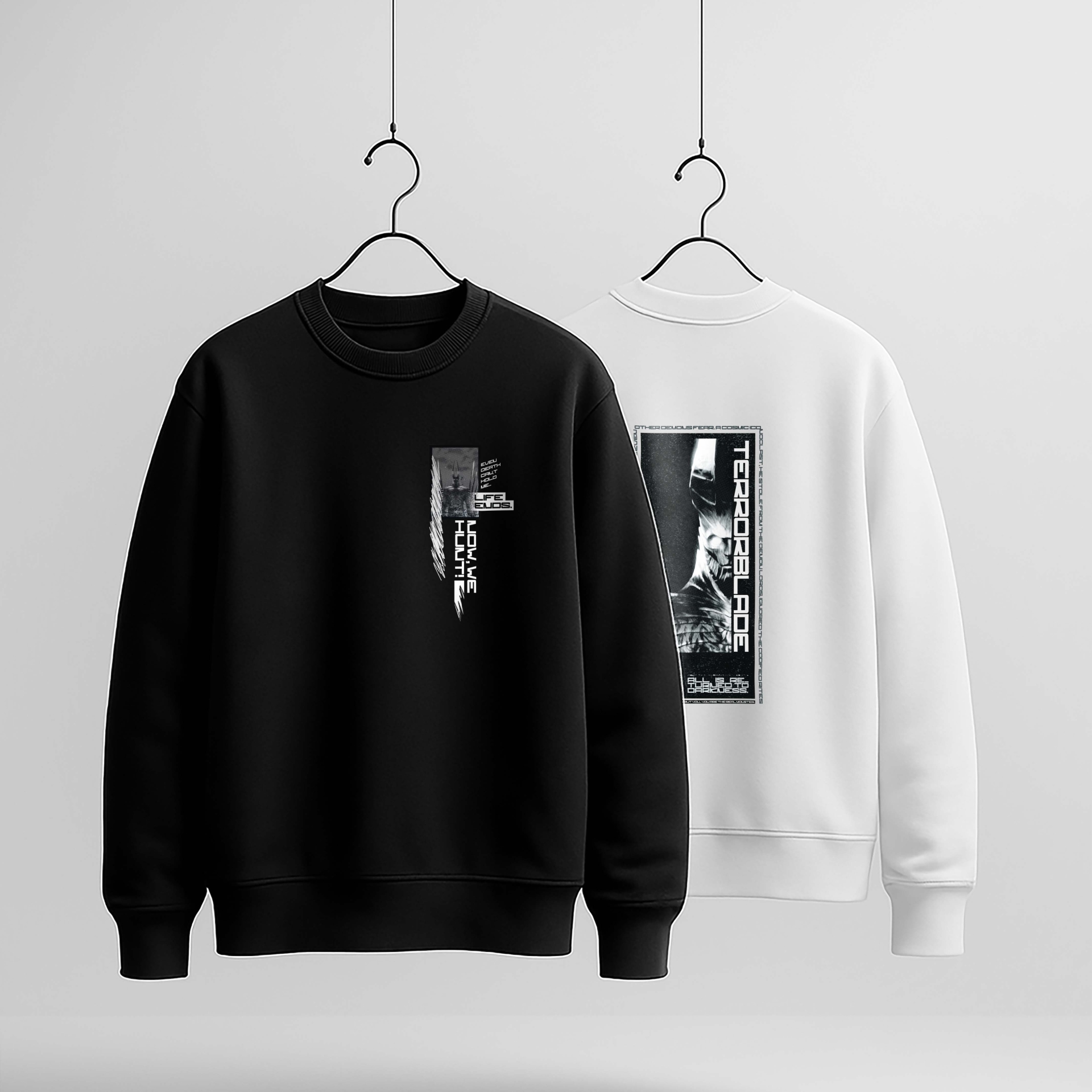 جلوی تیشرت یک المان کوچیک، ترکیبی از تصویر و تایپو گرافی داریم که انگار یک هشدار از دنیای تروربلیده...
