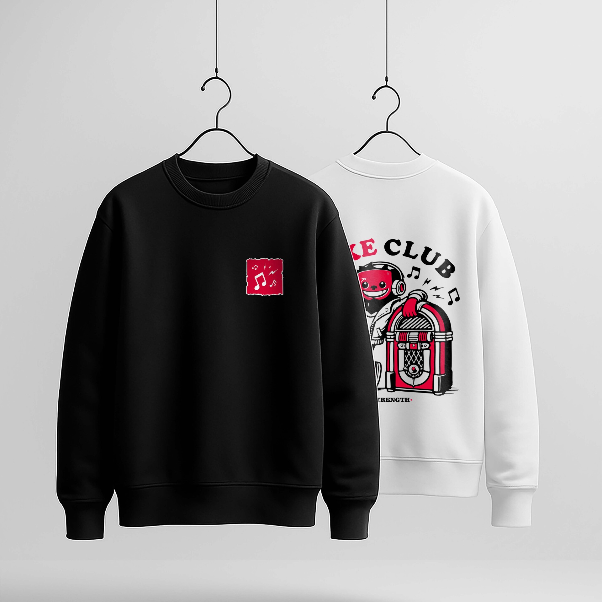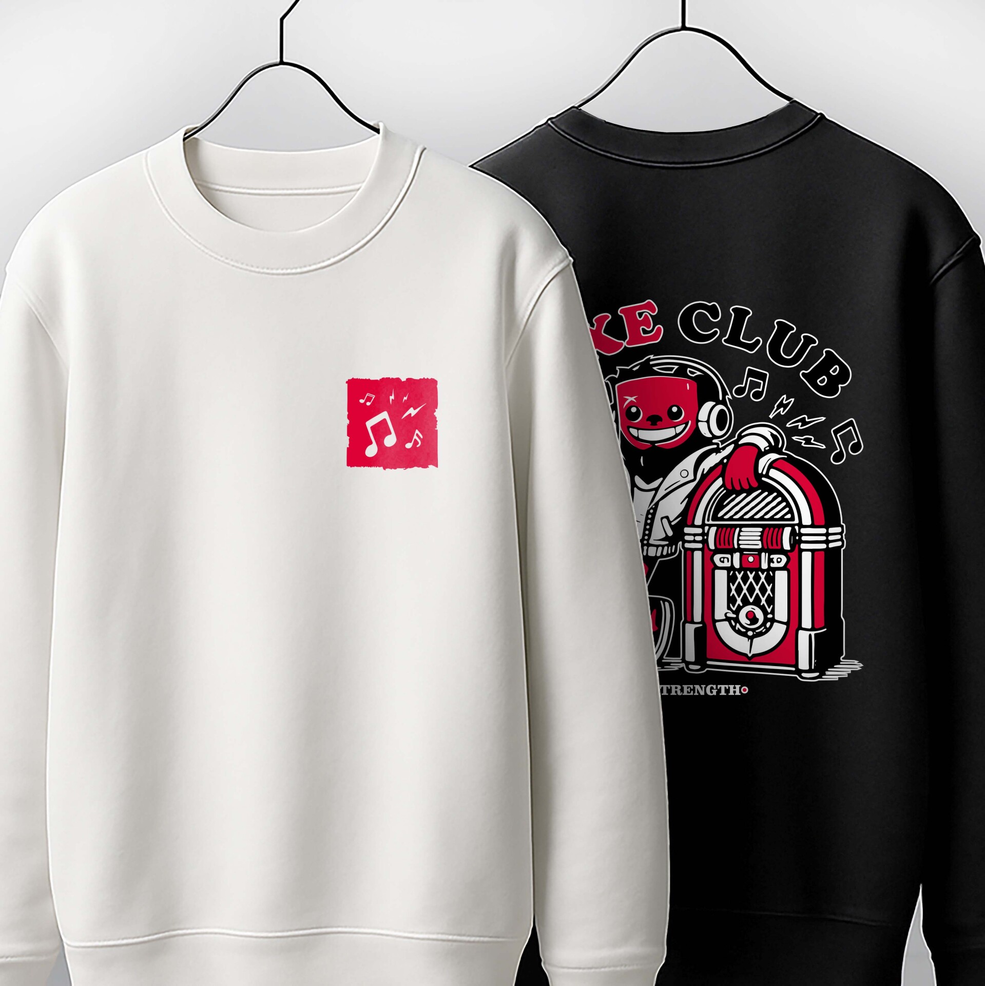 جلوی هودی توی همون حال و هوای قرمزِ لوگوی dota2، نت های موسیقی رو داریم.