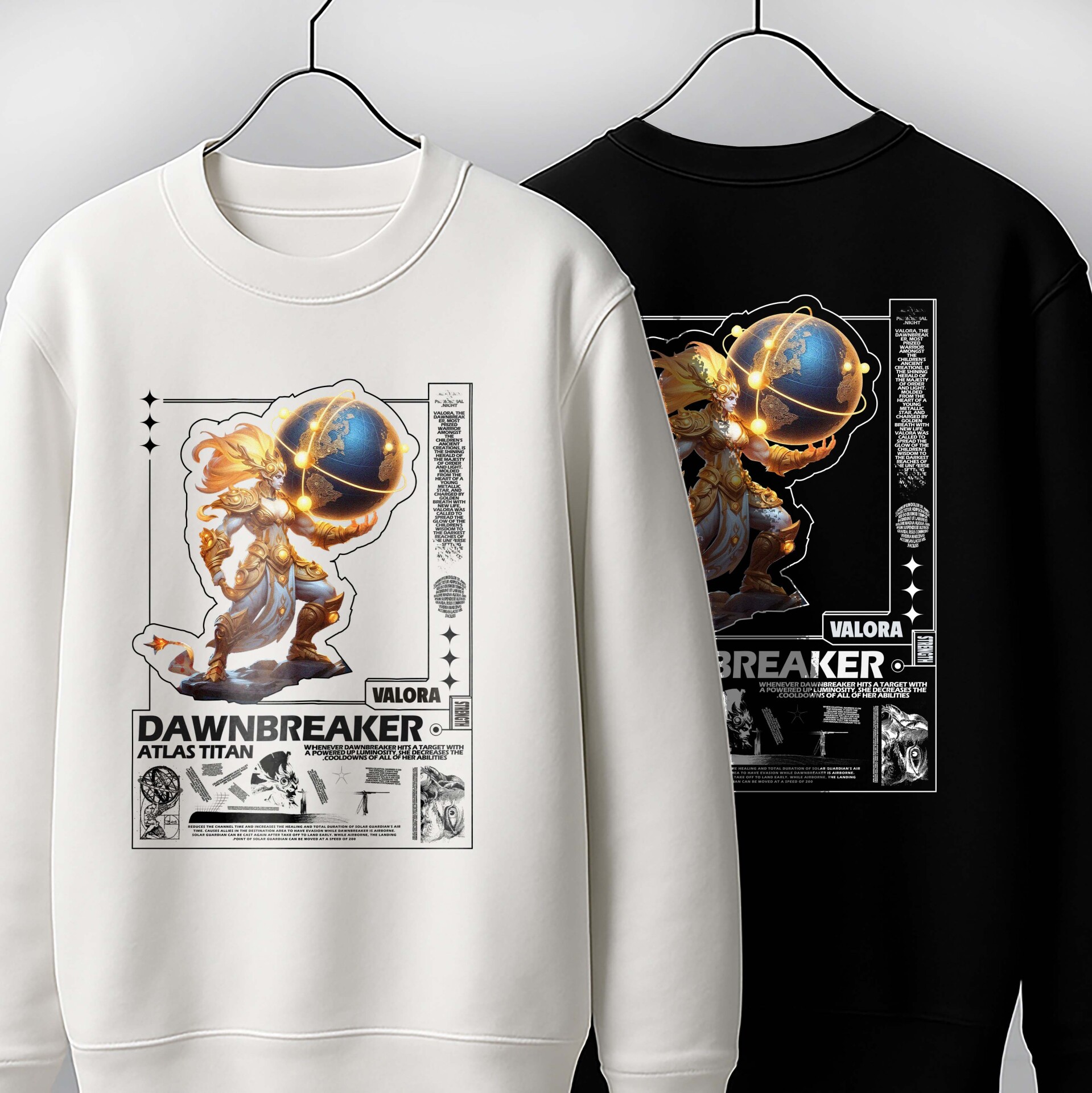 این طرح، لحظهایه که Dawnbreaker، فرزند نور، زمین رو روی دستش نگه داشته.