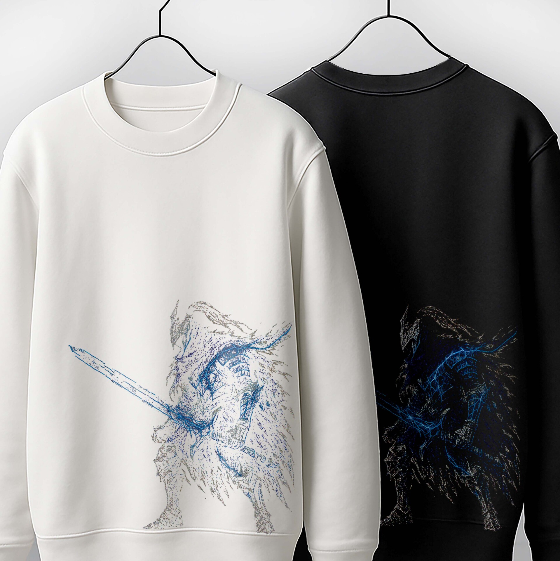 اما نه با یه طراحی معمولی، اینجا با نقطه‌گذاری‌ها، سایه‌سازی‌ کردیم و جزئیات رو تشکیل دادیم! طوری که انگار خود آرتوریاس از دل مه و تاریکی داره بیرون میاد...