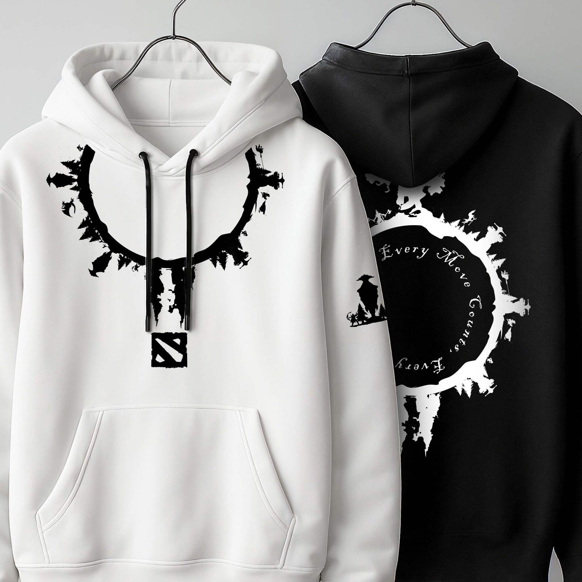 جلوی کار، یک نیمدایره مثل یک گردنبند قدرت روی سینه نشسته؛ ترکیبی از شکل ایشنت ها، تاورها، مسیرها و سایهی هیروها و لوگو بازی که هرکسی دوتا2 پلیر باشه همون لحظه میشناسه!