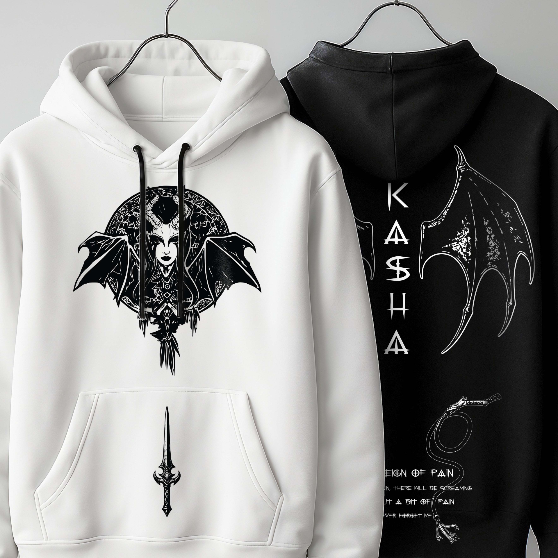 یک استایل خطی، در عین حال هنری که پرترهی جذاب و شیاطینۀ Akasha رو با بالها، شاخها و جزئیات سلاحش ترکیب کرده...